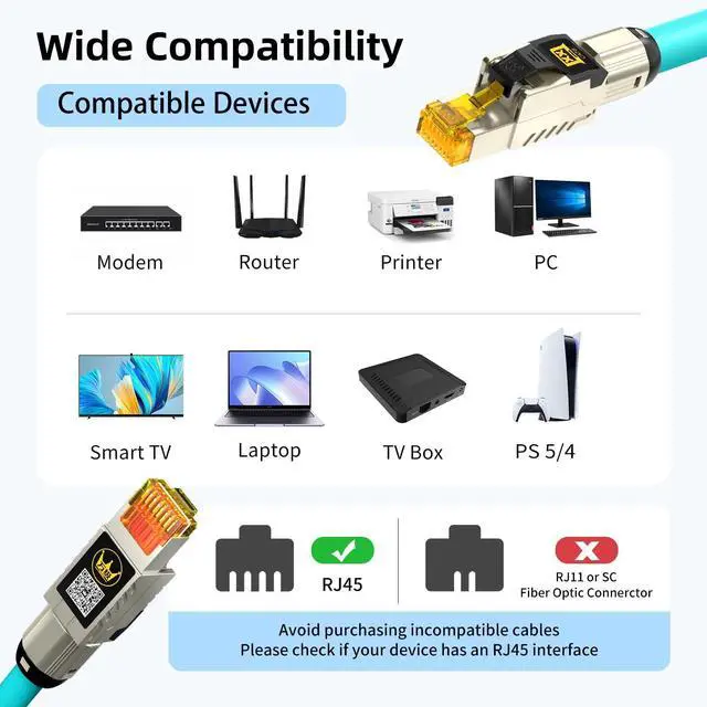 EASY INSTALLATION: Featured with innovative "Zeus" tool-free RJ45 plugs. No need for specialized punch-down tools or professional expertise. Simply insert the wires for a secure, foolproof connection every time. Save time, money, and hassle on custom cable terminations, perfect for DIY enthusiasts and IT professionals alike. ^^ LAG-FREE GAMING & 8K