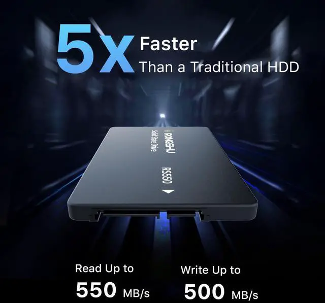 Upgrade your computer: Compared to traditional mechanical hard drives, the RONGSHU SATA SSD delivers more than 3 times the performance, which significantly improves the speed of booting up your computer, file transfers, and game loading. It also features lower power consumption and delivers a quiet running experience. It is the best choice for computer and laptop upgrades ^^