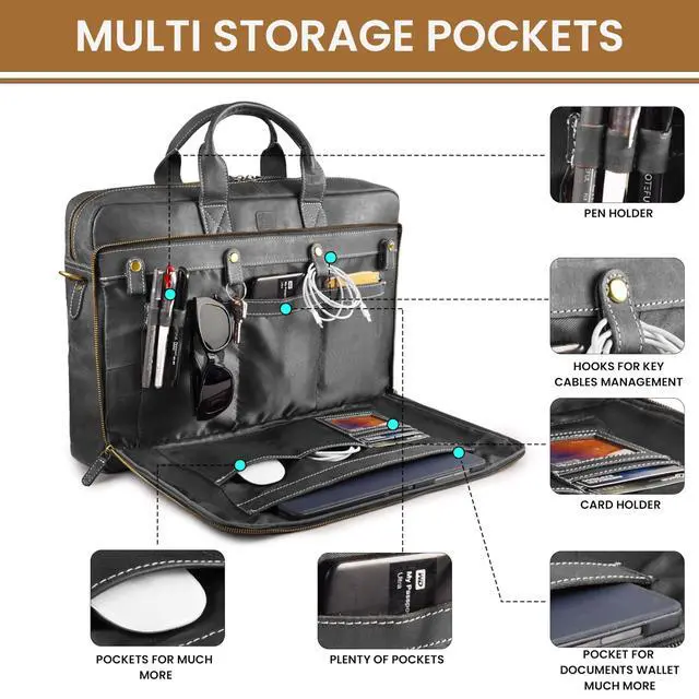 PREMIUM AGING LEATHER: Crafted from top quality full grain hide that softens and develops character over time. Reinforced stitching and durable hardware provide long lasting reliability for daily professional use.