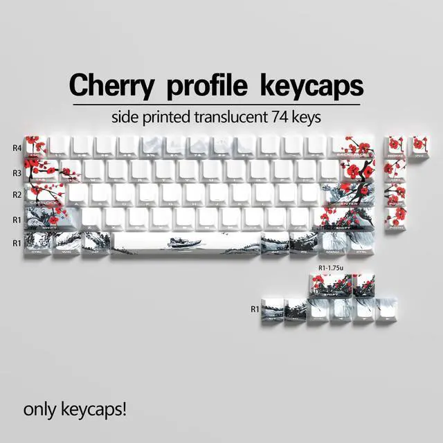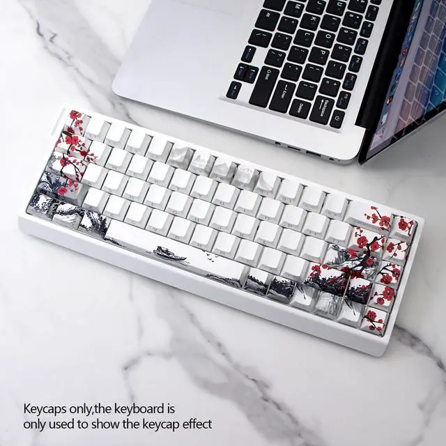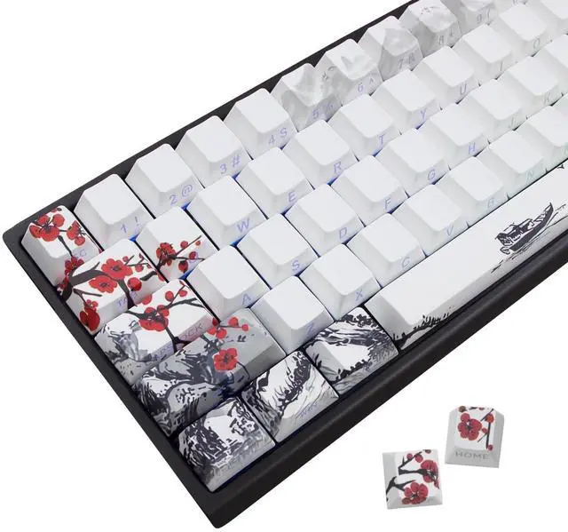 Plum Blossom Keycaps: PBT side printed white keycaps, combined with ink style design, very simplicity keycap set! Whether you use it yourself or give it as a gift to your friends, it's a good choice! ^^ PBT Side Printde KeycapsThese plum blossom themed keycaps are made of high quality PBT material, which is friction resistant and feels great, ensuring a better user experience.
