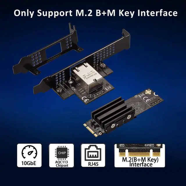 Powerful Performance: 10 gigabit M. 2 M Key ethernet network expansion card is equipped with AQC113 Chip and offer high-performance wired networks transmission speed up to10Gb. Connect to any wired network via the RJ45 port network auto-negotiates at 10Gb/s, 5Gb/s, 2.5G b/s, 1Gb/s and 100Mb/s Base-T ^^ Special Design for M.