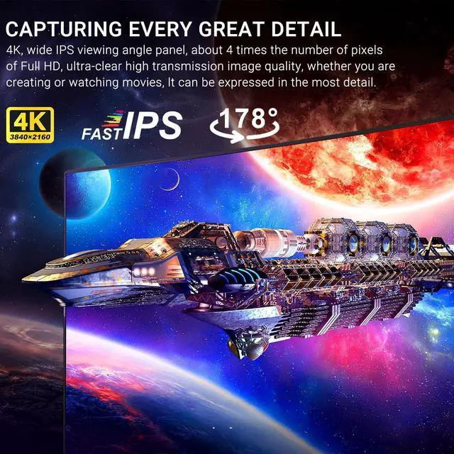 Stunning 4K Ultra HD Resolution, Immerse yourself in breathtaking clarity on this 32-inch IPS monitor with 3840x2160 resolution (4x the pixels of Full HD) for unparalleled detail. Perfect for creators tackling intricate designs, charts, and video editing, or gamers diving into lifelike, ultra-realistic worlds ^^ Professional-Grade Color Accuracy, Experience stunning, true-to-life visuals with 120% sRGB wide color gamut coverage and 16.7 million colors perfect for graphic design, photo editing, video production, immersive gaming, and cinematic movie watching ^^ Ultra-Smooth Gaming Performance, Adaptive Sync technology eliminates screen tearing and stuttering by dynamically matching the monitor's refresh rate to your GPU's frame output, delivering flawless 4K visuals.