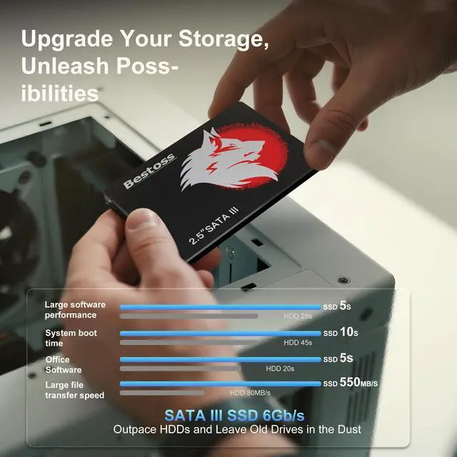 Sirius: Replace slow HDDs with this internal SSD. 550MB/s read speeds boot systems at least 50% faster than HDDs. Open office files in seconds and load games faster with this SATA SSD for your computer storage.