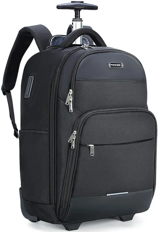 Ponhog Rolling Backpack, 30L Travel Laptop Backpack with Wheels, 15.6 Inch Roller Carry on Luggage with USB Charging Port, Flight Approved Personal Item Wheeled Suitcase for Men Women Adults, Black