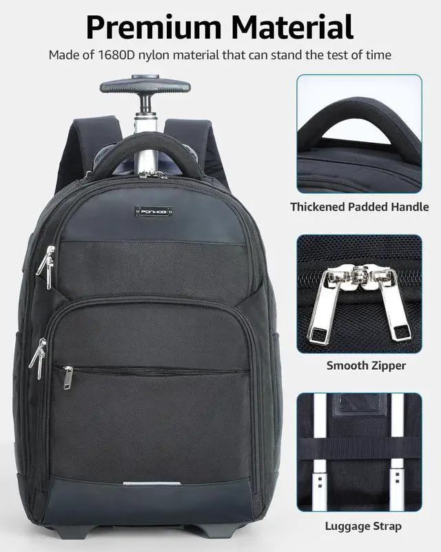 • PROTECTIVE MATERIAL: The travel rolling backpack is made of sturdy tear 1680D polyester fabric. Business work backpack equipped with a corner guard and stand feet to protect the backpack from