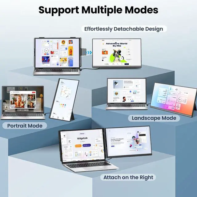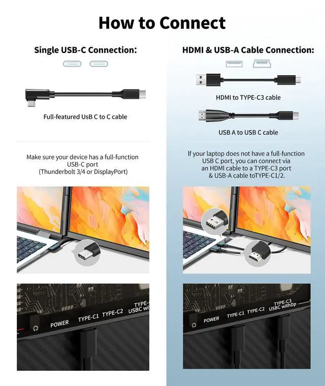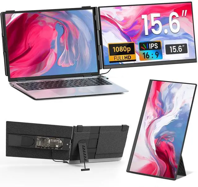 Upgraded 15.6" Detachable Screen - Ultra PortableThis 15.6 -inch Cevaton laptop screen extender features a detachable design with a 360 rotatable stand, supporting various screen configurations such as horizontal and vertical modes to suit different usage scenarios; The upgraded 1080P Full HD borderless screen not only embodies minimalist aesthetics but also provides a wider and more immersive visual experience; Weighing just 1.45 lbs per screen, its lightweight and portable design makes it an ideal choice for professionals who travel frequently ^^ Boost Your Productivity by 200%The dual laptop monitor extender offers multiple display modes, including extended, mirrored, and portrait modes, effectively addressing the challenges of limited screen space and constant window switching; With seamless multitasking capabilities, it can enhance your productivity by up to 200%; Equipped with a 1080P FHD IPS display/300 nits brightness/ 1:1000 contrast/85% NTSC color gamut coverage, delivering vivid colors and crisp visuals; The portable monitor's adjustable brightness feature protects your eyesight even during extended use, making it ideal for creating a space-saving and efficient workstation ^^ Plug and Play, No Drivers RequiredThis portable monitor for laptops comes with all the necessary cables for a seamless and hassle-free setup; For laptops with a fully functional Type-C port (labeled as Thunderbolt 3.0 / 4.0, supporting DP or video output), a single USB-C to USB-C cable is all you need for quick connectivity; If your laptop lacks a fully functional Type-C port, you can easily connect using one USB-A cable and one HDMI cable; The setup is straightforward and fast, with no complex installations required; Should you encounter any connection issues, our support team is always ready to assist, ensuring a worry-free experience ^^ Broad Compatibility & Sleek DesignThis portable laptop screen extender uses laptops of all sizes, offering broad compatibility with Windows, Chrome, Mac, Android, Linux, Dex, and Switch; The dual monitors boast a fully transparent back panel paired with vibrant RGB breathing lights, delivering a sleek, futuristic aesthetic; When used in single-screen mode, the monitor extender does not need to be clamped onto the laptop, nor does it add any burden to the computer ^^ Reliable after-sales serviceThe upgraded ultra-thin screen of the laptop monitor extender is now just 5mm thick, and we've introduced a lightweight version based on user needs; The total weight of the device is only 2.75 lbs ( 1.45 lbs when detached), making it easy to slip into your backpack for hassle-free portability during travel; Cevaton offers a 24-month quality guaranteeif any accessories are missing from your package or you encounter any issues during use, simply reach out to our support team, and well provide a satisfactory solution within 24 hours!