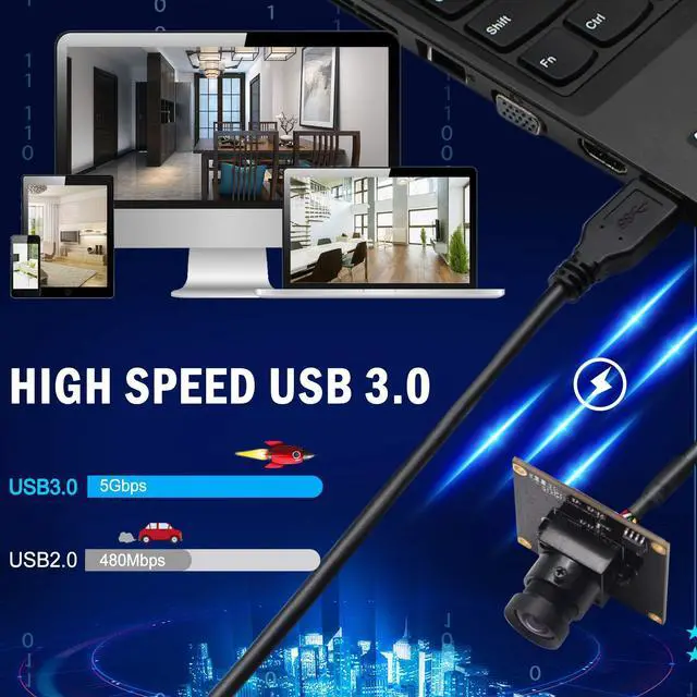 HIGH SPEED USB 3.0USB connecting port in this camera support high speed USB 3.0 data transmission. Faster and better experience than regular USB 2.0. ^^ PREMIUM IMAGE AND VIDEO QUALITYThe 2MP 1080P webcam with 1/ 2.8 inch SONY IMX291 image sensor give you a high definition Image and video, offering a crystal clear image quality for video call, conference, etc. With the wide 100 view angle, this 1080P webcam can show things wider and smoother. ^^ PLUG AND PLAYNo driver required. You don't need to install any driver, enjoy easy USB 3.0 connectivity to PCs or Macs.