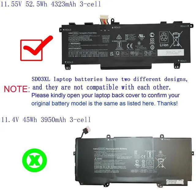 Condition: Brand New. ^^ Replacement for Part NumberSD03XL SD06XL SDO6XL HSTNN-089U HSTNN-DB9U HSTNN-OB1R L84356-2C1 L84357-AC1 L84392-005 L84394-005 LB4392-005 (Note: SD03XL has 2 different capacity batteries (45Wh and 52.5W h). To save your time and money, please open the laptop back cover before ordering to confirm your battery is the same as described in the picture. ) ^^ Compatible with Machine Modelsfor HP Omen 15 2020 15-EK0000