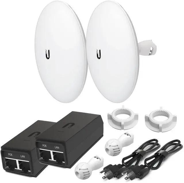 Whether you're extending your network across buildings, connecting remote locations, or providing wireless internet access to a large area, the NBE-M5-16 delivers exceptional performance and reliability. This comprehensive package includes 2 Paired M5 devices, 2 POE Injectors with power cords, 2 Pole and Wall mounts, and an easy-to-follow Installation guide.