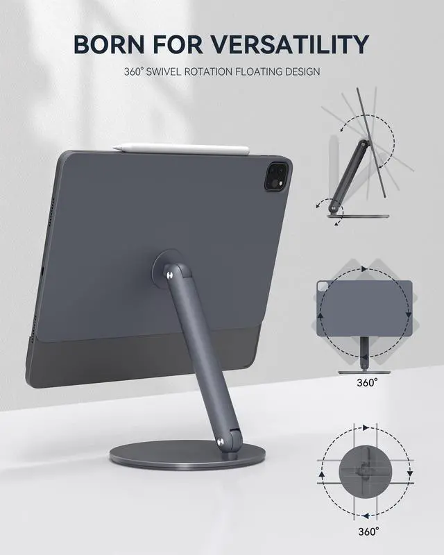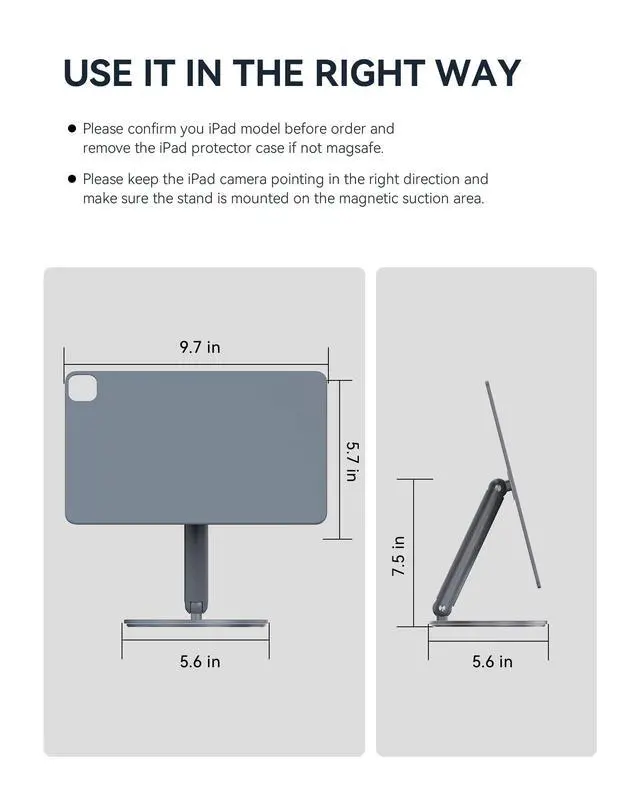 Secure Magnetic: The strong magnetic mount of this iPad holder stand securely holds your device in place, providing you with a hands-free experience without having to worry about your iPad slipping or falling.