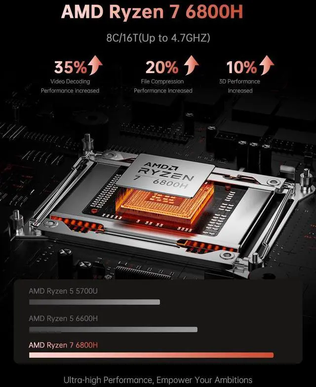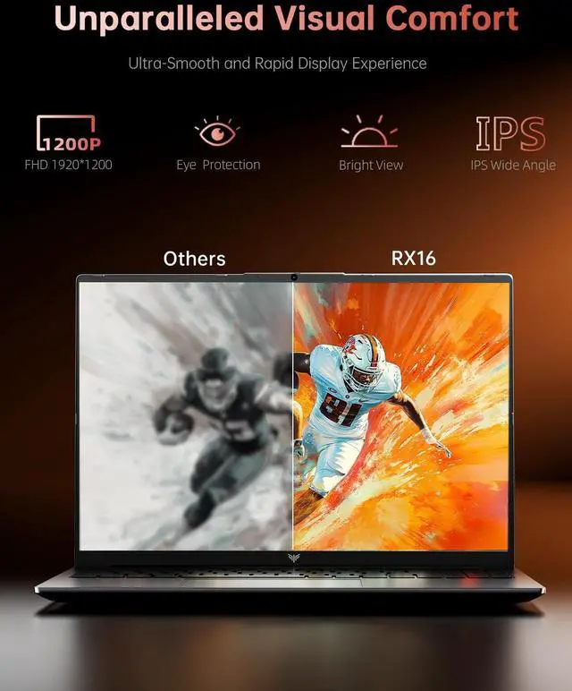 ENGINEERED FOR SPEEDThe KAIGERR 2026 RX16 laptop is equipped with the powerful AMD Ryzen 7 6800H processor (8C/16T, up to 4.75GH z), delivering superior performance and responsiveness. This upgraded hardware ensures a smooth experience, fast loading times, and high-quality visuals. It provides an immersive, lag-free experience. Its performance is far moere than 30% better than AMD R7 5700U/5800U/5825U/6600HX. ^^ 16" High-Definition IPS ScreenWith its wide color gamut and high refresh rate, this laptop delivers smoother visuals and sharper detail, offering a more vivid and accurate representation than standard displays.
