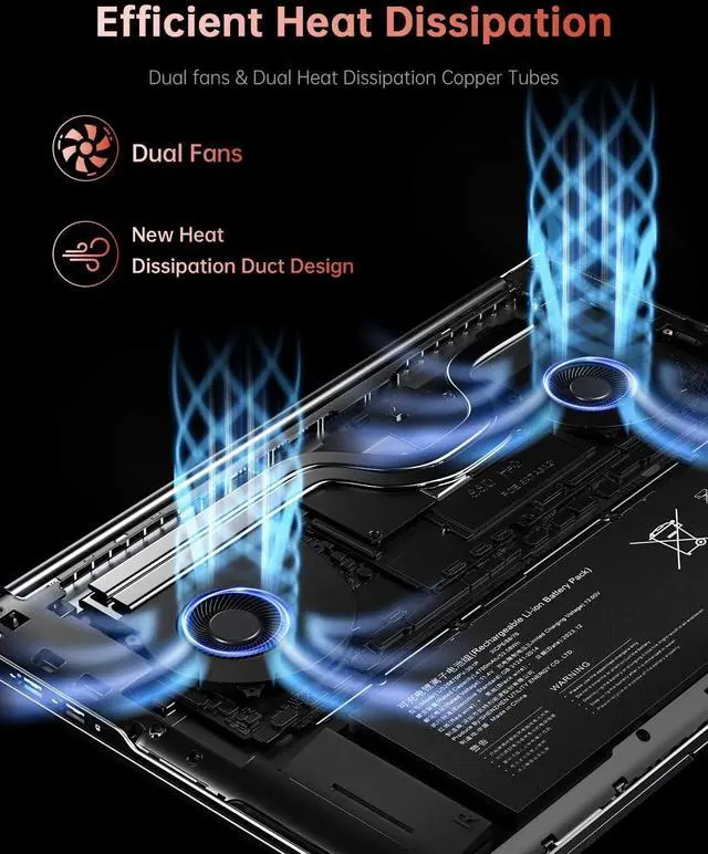 This enhanced clarity brings a stunning and immersive visual experience, making every scene more dynamic. ^^ INSPIRE YOUR POSSIBILITIES The laptop on sale comes with 16GB DDR5 memory and a 512GB M. 2 NVMe SSD for faster response times and ample storage. Dual-channel DDR5 memory supports upgrades to 64GB (2x32GB), and NVMe/NGFF SSD can be upgraded to 4TB, providing plenty of space for all your favorite videos/files. ^^ Dual-Fan Cooling SystemWith two powerful cooling fans, KAIGERR laptop ensures superior heat dissipation, keeping your system cool even during intense gaming sessions.