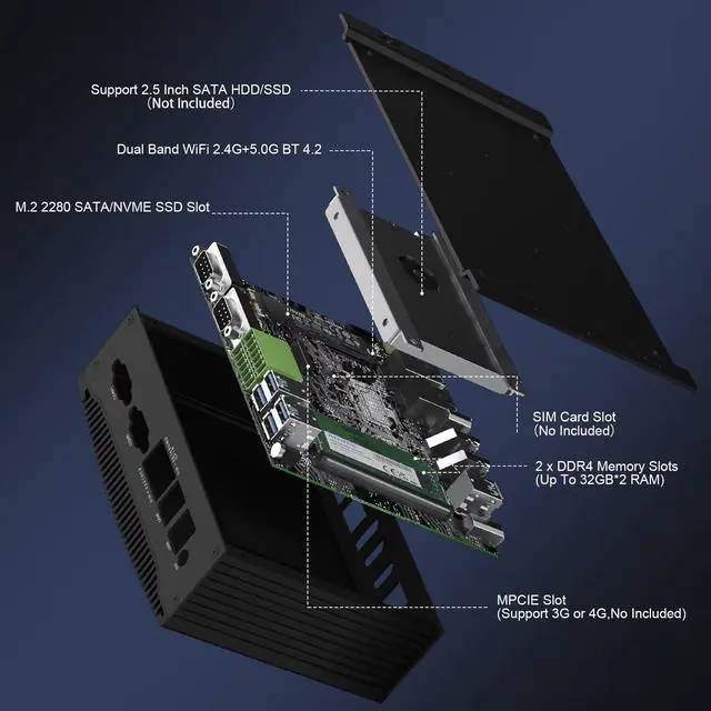 It can be used as an HTPC to set up your home theater, or you can use it in the office, training center, factory or anywhere else you need a computer, it is very versatile. ^^ Compact Portable & Strong FunctionsFanless PC with the size of 8.07 * 4.92 * 2.08 inches ( 2.65 lb), this mini computer is compact that helps to save space and is easy to carry. Although it doesn't have fat computer case, it owns functions of all ordinary computers, offer stronger performance. ^^ Multiple Wireless Connections & Interfaces Fanless Micro PC with Dual Gigabit Ethernet LAN (RJ-45, supporting Gigabit file transfer speeds), Dual-band 2.4G + 5.0G WiFi (WIFI5) and built-in BT 4.2, high-speed wireless connection makes you step ahead.