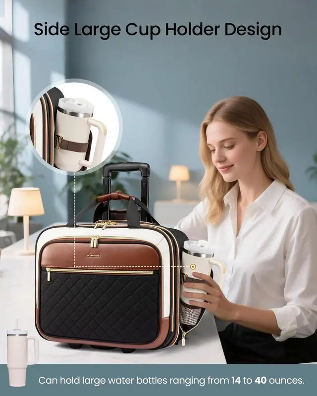 Also, it is a carry on suitcase which can free your hands. ^^ Durable Telescopic Handle & Silent WheelsThis carry on luggage for women features a durable aluminum telescopic handle. Wear-resistant high-density silent rubber wheels ensure quiet gliding even on bumpy roads. ^^ Lightweight & DurableHigh-density polyester ensures the durability of the briefcase while preventing the bag from being too heavy. Its small size and large capacity make your travel easier. ^^ Multi-Purpose LOVEVOOK rolling laptop bag is suitable for overnight stays, commuting, business trips, impromptu trips and road trips.