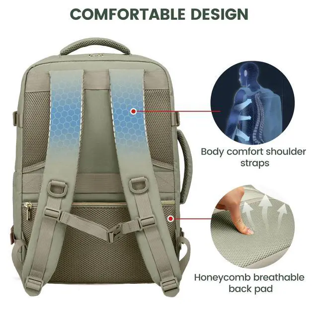 ^^ Long-Lasting & Comfort: Our travel backpack is made of tear-proof, waterproof and abrasion-resistant materials, this carry-on backpack has thickened soft and comfortable cotton padding on the back and shoulder straps to withstand the rigors of travel and provide comfort during long journeys comfortability. ^^ Ideal Gift for