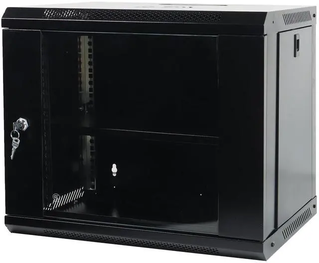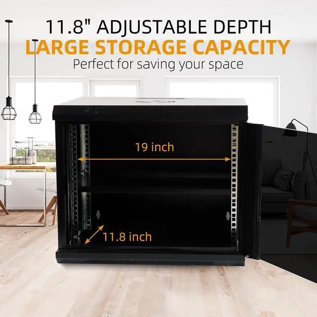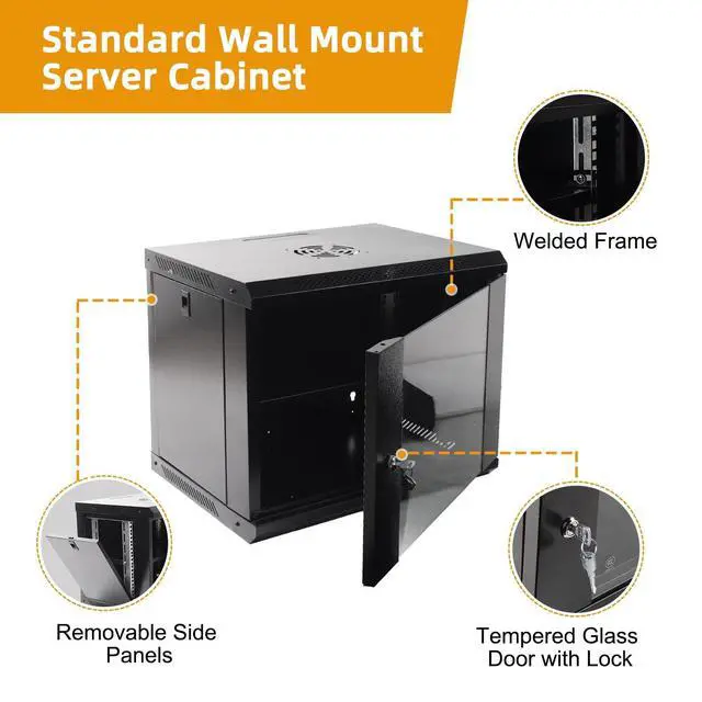 High Security - This 9U cabinet features a reinforced, heat-treated, tempered glass front door with a security lock and removable side panels, prevents critical IT equipment from damage, theft and unauthorized access. Wall mount rack enclosure server cabinet is ideal for use in public places such as offices, computer room, etc. Effectively protecting the security of your dev
