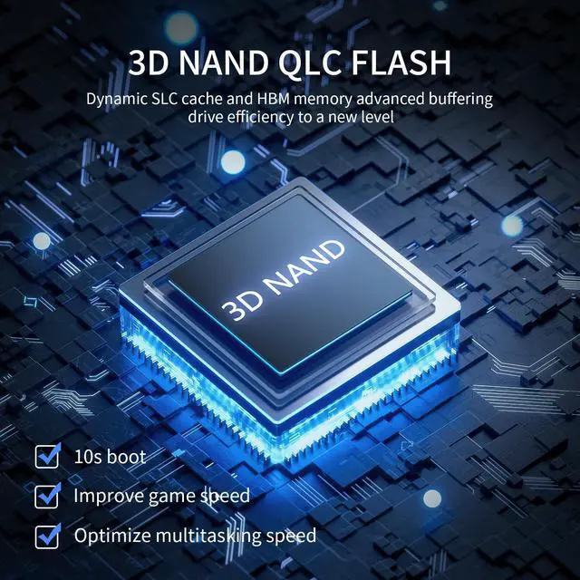 [HIGH SPEED TRANSMISSION] The fikwot FX550 M. 2 SSD uses 1TB 3D NAND QLC flash drive and enables NVMe SSD to perform excellent read and write speed up to 3500/2500 MB/s. At the same time, the FX550 1TB NVMe SSD is equipped with dynamic SLC cache and HBM memory buffer technology, it performs 10s of fast boots, dramatically increases transmission and read speeds such as multitasking, gaming resources and graphics upload, and improves the user experience. ^^ [EXCELLENT PERFORMANCE] FX550 M. 2 NVMe SSD features fast response speed, low power consumption, stable and durable, noise, shock resistance and high temperature resistance.