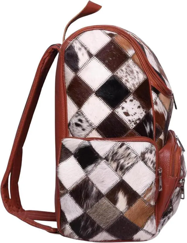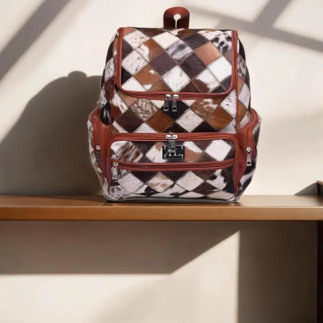 It offers multiple compartments and five zippered pockets to keep everything from baby bottles to tablets organized. The soft cotton interior cushions your belongings, while sturdy hardware and smooth zippers of full grain leather backpack laptop ensure long-term reliability. An adjustable shoulder strap provides comfort for all body types, making a luxury designer backpack cowhide perfect for daily commutes, weekend getaways, or parenting on the move. The natural leather develops a rich patina over time, and each piece is one-of-a-kind thanks to the beautiful tan and brown multipatch design. This Boho-chic, modern, premium cowhide and leather diaper bag is a must-have for the fashion-forward.