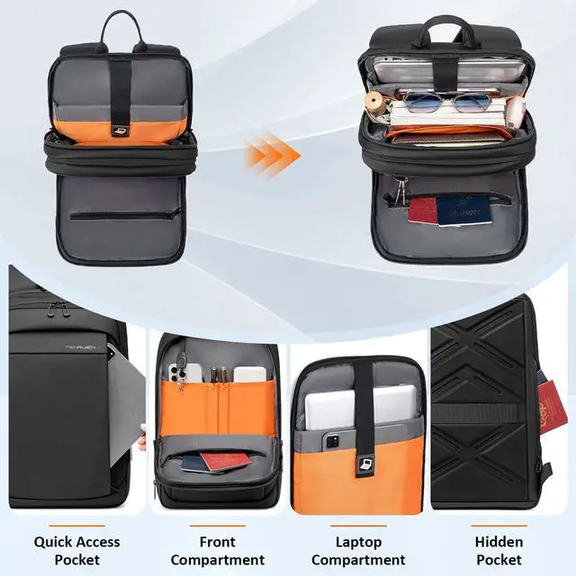 Durable Materials: FENRUIEN minimalist backpack is constructed with water resistant 1800D Oxford fabric and a grey-orange polyester lining, offering long-lasting durability and reliable protection for daily use and travel ^^