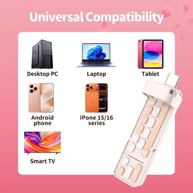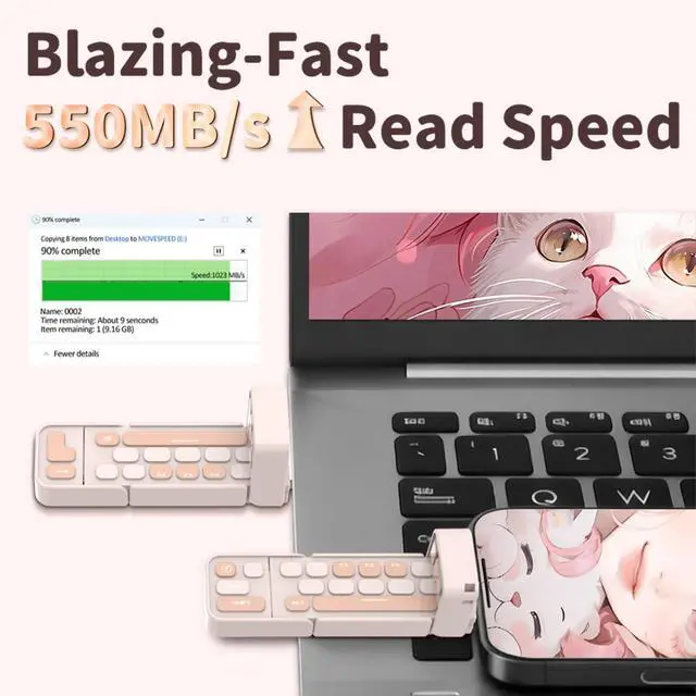 Chic & Nostalgic Keyboard DesignInspired by classic keyboards, this pink portable SSD blends retro charm with modern elegance. Its mini keyboard aesthetic makes it a stylish accessory for creative, organized, and fashion-forward womenperfect for adding a touch of personality to your tech collection. ^^ Blazing 550MB/s Transfer SpeedsEffortlessly move files with USB 3.2 Gen 2 technology! Transfer a full HD movie in 15 seconds or back up your entire phones memories in under a minute. Ideal for handling large projects, editing high-res photos/videos, or saving your media libraryall while you sip your coffee.