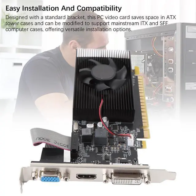 Easy Installation And Compatibility: Designed with a standard bracket, this PC video card saves space in ATX tower cases and can be modified to support mainstream ITX and SFF computer cases, offering versatile installation options.
