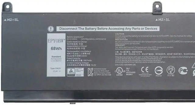 Condition: Brand New. ^^ Replace Part NumberC903V PKWVM 0CR72X CR72X 068N03 0447VR ^^ Compatible with Laptop Models for Dell Precision 7550 7560 Series; for Dell Precision 7750 7760 Series ^^ Purchase SkillsPlease open the back cover of the laptop before ordering and make sure that the original battery model is consistent with the listing. After getting the battery, please install the battery correctly, make sure that the battery connector is firmly connected to the laptop motherboard, and use the original charger to charge the laptop. Discharge the new battery to 5% (not 0%), then charge and cycle 3-4 times to wake up the new battery. ^^ EPYOBW PromiseAll EPYOBW's batteries are certificated by UL/CE/FCC/RoHS. Our batteries are tested by strict quality control standards to ensure that the capacity is true, stable current, low self-discharge. And we also have short circuit, overheat, and overload protections. We are confident in the performance of replacement batteries and professional service.