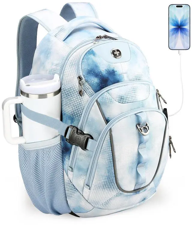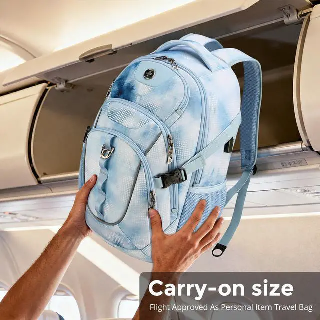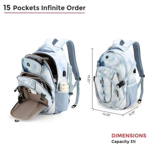 Multiple Pockets: This computer backpack features a multi-layered storage system including 1 front and 2 side quick-access pockets for on-the-go items. This bookbag also comes with a luggage strap, letting you attach it to suitcases for one-handed pulling during travel ^^