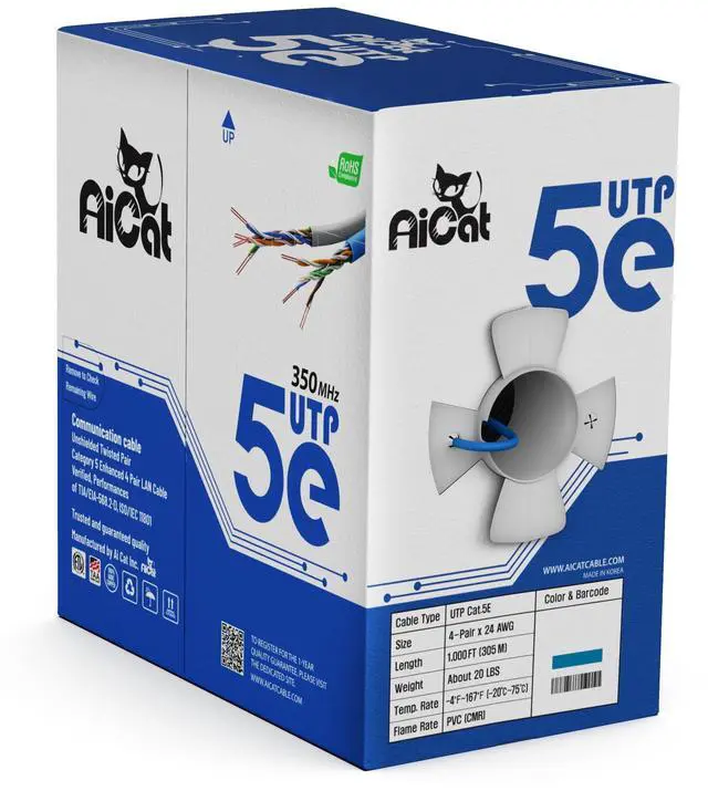 CERTIFIED AND TRACEABLE: All AiCat. Cables are CSA and ETL Certified, TAA and RoHS Compliant, and CMR flame resistant (IEC 60332-3 Cert). Each cat5e cable 1000ft is part of a detailed lot tracking system, barcode traceable and comes with a full guarantee. When you order now, youll be joining thousands of companies around the world who rely on AiCat.