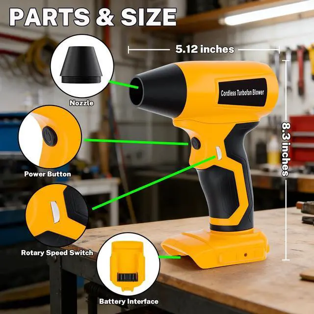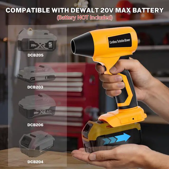 ^^ - Battery Replaceable: The electric air duster compatible with Dewalt 20v Max lithium batteries (Battery Not Included). You can replace the battery with another one when it runs out of power. ^^ - Lightweight and