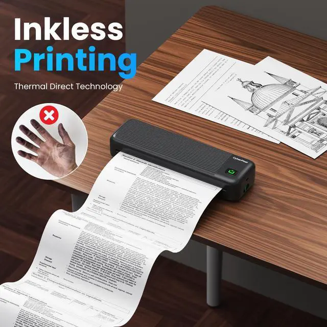The most convenient part is that it comes with a built-in paper compartment, so you dont need to carry paper separately each time. (The inkless printer includes one roll of A4 thermal paper as standard. ) ^^ [Supporting Diverse Printing Needs] This CyberPixel A4 portable thermal printer is compatible with a variety of thermal paper sizes, including US Letter, A4, 4-inch, 3-inch, and 2-inch, and supports roll paper, single sheets, fanfold paper, and more. We are also compatible with multiple document formats: Word, Excel, PDF, JPG, etc., which can easily print various contracts, documents, notes, etc. to meet the printing needs of different scenarios.