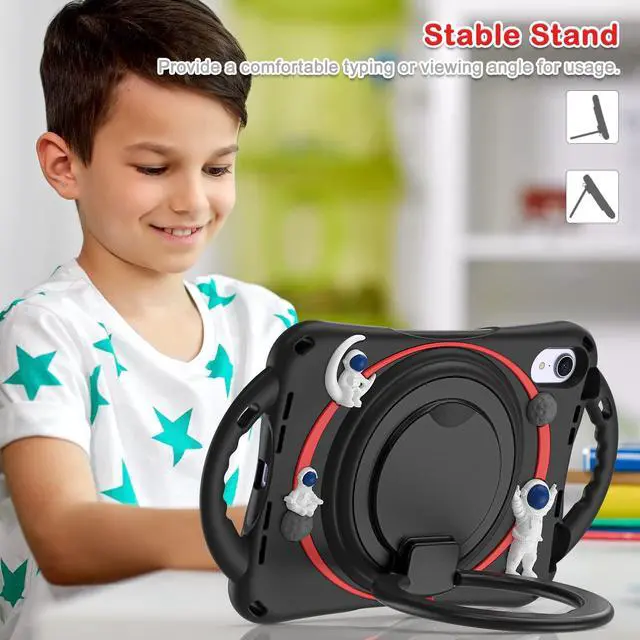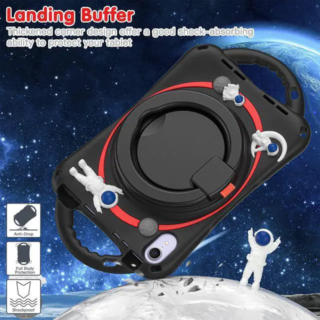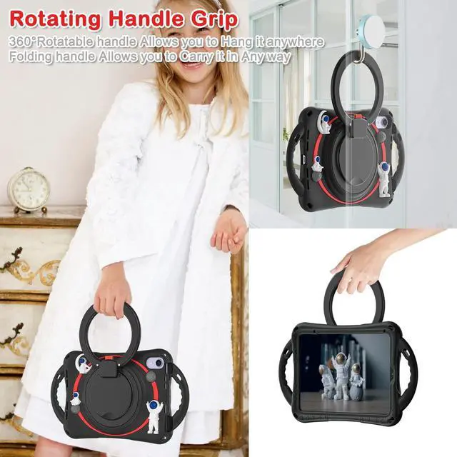 Introducing our iPad Mini 6 Case, expertly designed to provide ultimate protection and convenience while showcasing a unique Space Astronaut Theme. This premium case combines style, functionality, and durability, ensuring your iPad Mini 6 remains safe and secure throughout daily use. Experience comfort and security with the 360 Rotating Handle Grip. The adjustable grip guarantees a snug fit, making browsing, reading, or gaming a breeze. The Folding Handle offers easy storage and portability for users of all ages. Enhance your user experience with our iPad Mini 6 Case's built-in Kickstand, offering versatile viewing angles in both portrait and landscape orientations.