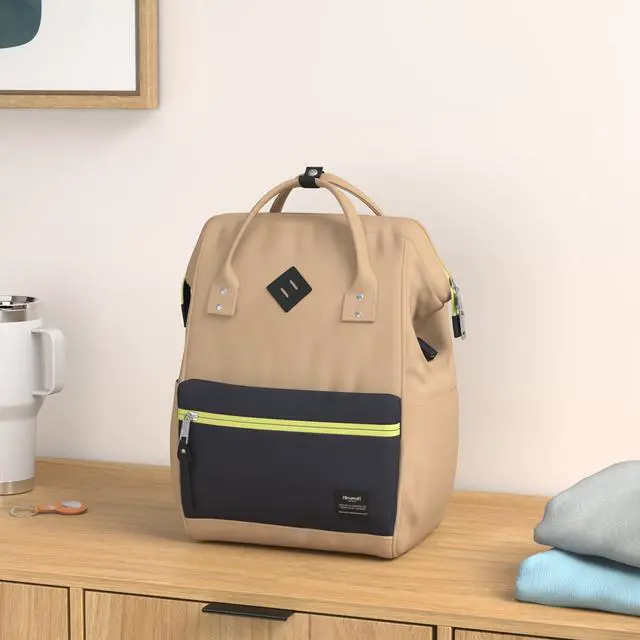 Features: Stylish backpack made of eco-friendly waterproof canvas, soft and fashionable, classic and minimalist design really stands out from the crowd! 2 big front zipper pocket, 2 inner small pockets, 2 side pockets Easy access doctor bag-style opening, Spacious Backpack with Vertical zipper in back provide quick access to the main compartment, Padded back panel and shoulder strap provide comfortable carryPadded back panel and adjustable shoulder straps, provide comfort carrying. Perfect lightweight canvas backpack for working, traveling, College and daily using. Generous enough to accommodate the magazine, 14.9" computer, tablet, glasses, wallet, keys, earphone, power bank, cell phone, documen. THIS ITEM IS NOT INTENDED FOR USE BY CHILDREN 12 AND UNDER