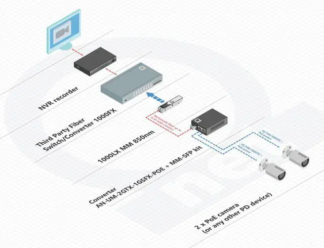 [ 2 in 1 PoE Device] Fiber Media Converter and 2 RJ-45 port PoE/PoE+ injector All in One Device, supporting IEEE 802.3 af, IEEE 802.3 at and fiber distance up to 0.34 miles (550 m), over MultiMode Fiber Optic Cable - using 850nm wavelength. ^^ [ Power Over Ethernet & Fiber Converter] - PoE Media Converter supports Power over Ethernet ( 802.3 af), enabling you to power PoE PD devices such as IP cameras and Wi-Fi access points directly through the network cable, simplifying installation and reducing cable clutter. PoE Fiber Media Converter transparently links a multi-mode fiber to a copper UTP Ethernet port while still providing up to 30W of power over Ethernet (PoE) to Powered Devices (PDs) such as IP cameras, VoIP phones, and WiFI AP's ^^ [ Versatile Features ]The PoE fiber media converter ensures compatibility with a wide range of network infrastructures.