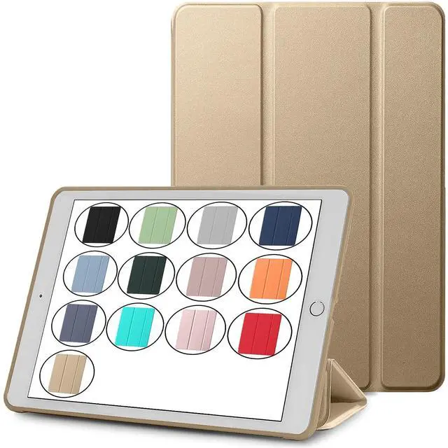 DuraSafe Cases for iPad 9.7 Inch 5 6 Air 1 2 [ Air 1st 2nd 9.7" 5th 6th Gen ] A1893 A1822 A1566 MD785LL/A MD788LL/A MD786LL/A MD789LL/A MD787LL/A Trifold Soft Silicone TPU Back Case - Brass Golden
