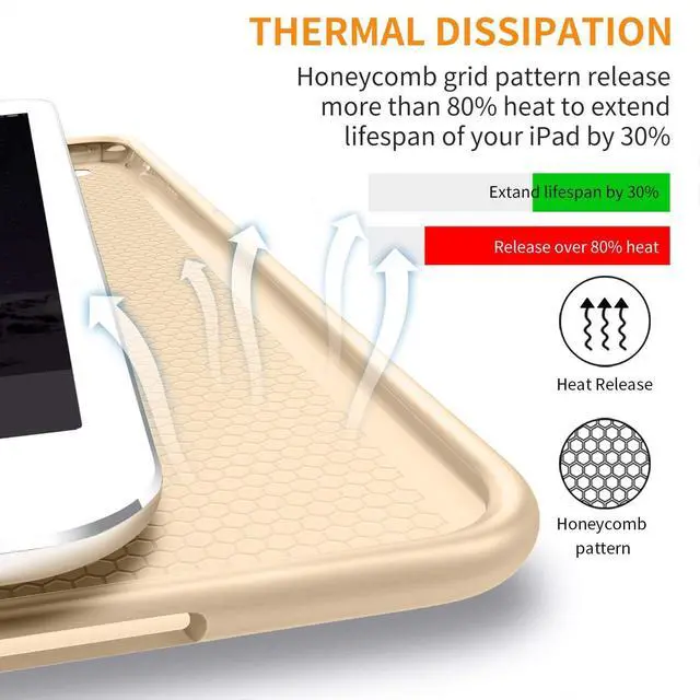 High Quality Lightweight Material & Excellent design makes this case feel very Stylish & Premium & Fully Protects your device against Shock, Abrasion, Scratch, Fingerprint, Slips, Dirt & Corner Damages. ^^ Dual-Angle Viewing/Typing Built-in Dual Angle Viewing/Typing Stand makes it much more comfortable for Typing, watching videos, surfing web & reading while keeping both your Hands Free & avoids any Joint Pain. Allows unobstructed gesture swipes & enhances the beauty of your iPad due to its exclusive Bezel-Free design. Built-in Magnet also helps to hold your iPad steady while using the Dual-Angle Stand feature & prevents your iPad from falling.