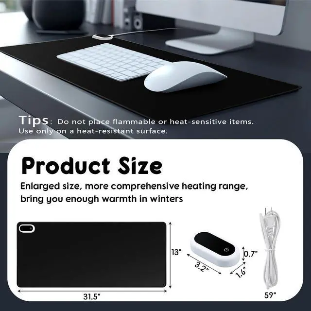 Heating Large Desk Mat: this heated office desk mat is 31.5" x 13", large enough to place your palm, mouse and other high temperature resistant and non-flammable items; There are many different colors, you can choose your favorite color according to your work vibe to create a more refined desktop ^^ 5 Control Levels and