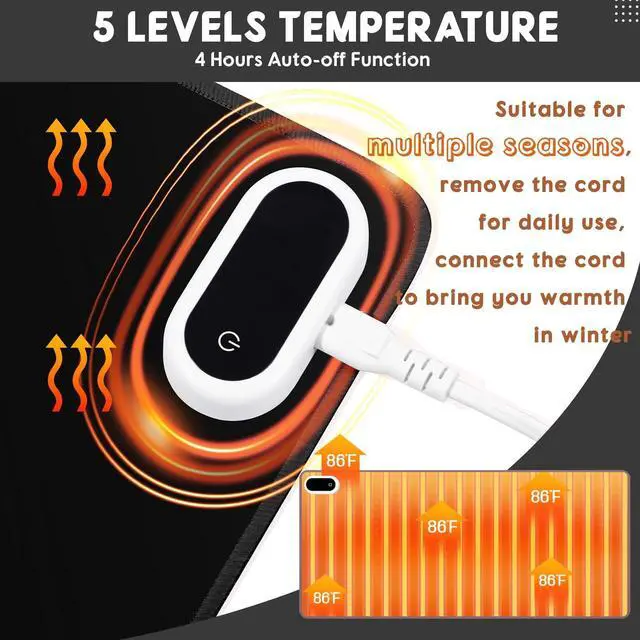 Auto Shut off: the warm desk mat equipped with US plug (only supports 110V voltage environment) has 5 levels of temperature: 86, 95, 104, 113, 122, you can easily adjust the temperature to suit your preferences; The heated mouse pad can automatically shut down 4 hours after power on, you can focus on your work or game ^^