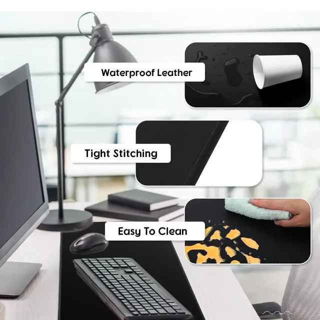 Quality Material: crafted from durable PU leather, this warm gaming mouse pad against scratches, stains, heat and scuffs, easy to clean, just wipe with a damp cloth or paper; The anti-skid bottom can prevent sliding, and the tight stitching ensure durability to keep your desk warm for a long time ^^