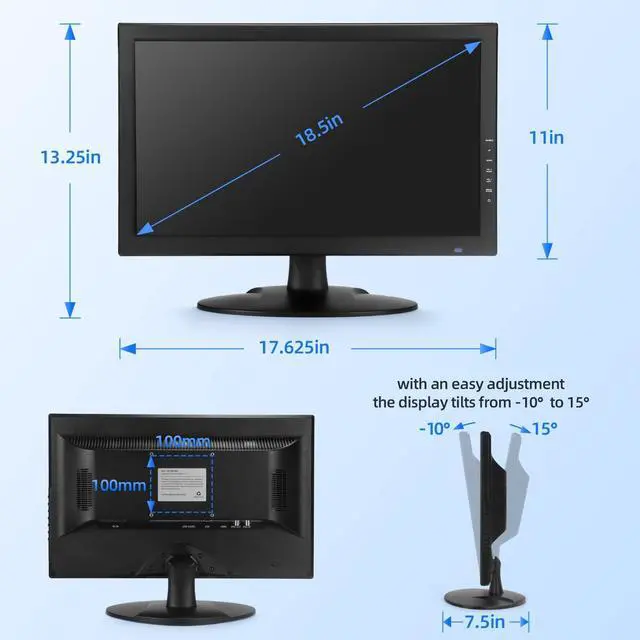 BNC input: Our 18.5" CCTV monitor offers flexible viewing options. Connect seamlessly to your PC, DVR, NVR, and gaming console using various ports, including 1x BNC, 1x HDM, 1 USB and 1 x VGA. Experience the convenience of versatile inputs and VESA mount capability for an optimal viewing experience. ^^ Durable and Reliable for 24/7