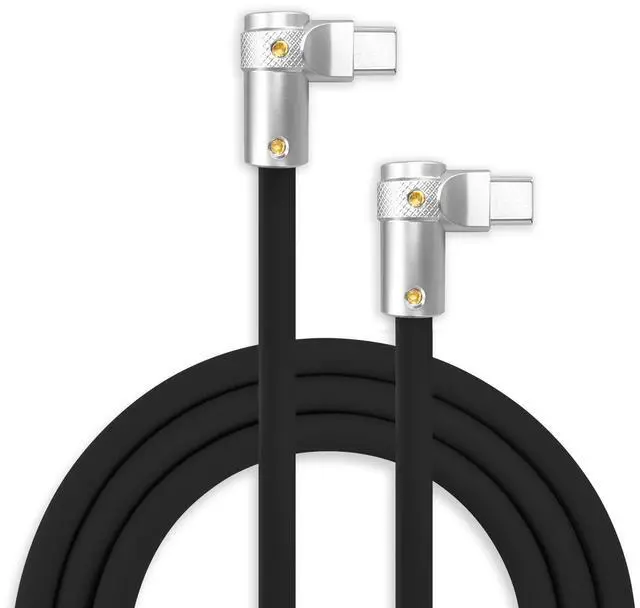 chubbycable FlexElbow 90 Degree 240W Fast Charging Cable Right Angle USB C Cable Silicone Charging Cord Compatible with iPhone 17-15 Series iPad, Black, Double Elbow Type C to Type C, 0.82FT