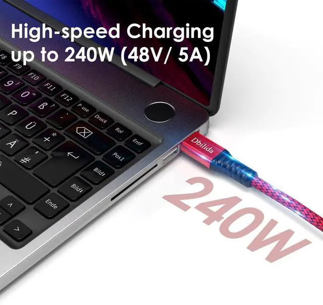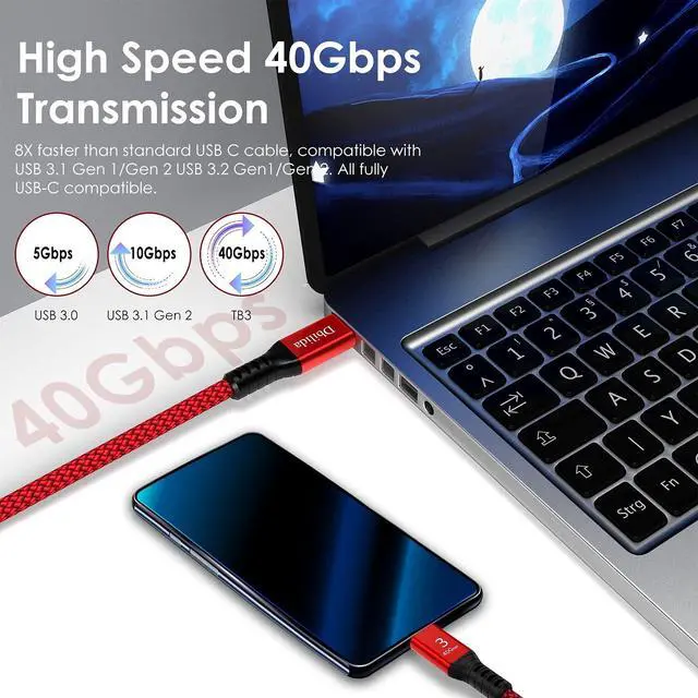 40Gbps & 240WThis USB C cable is designed for Thunderbolt 3 Cable 10ft, its supports an amazing speed of up to 40 Gbps to transmit data, 8x faster than standard USB 3.0. Support USB PD 3.1 Extended Power Range (EPR) including 140W, 180W and 240W(48V/5A). All fully USB-C compatible. Plug and play.