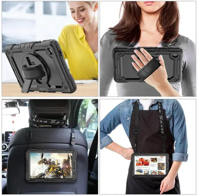 Release( Model: SM-T220 / T225 / T227 ) ^^ Soft Hand Strap & Portable Shoulder Strap & Rotating Stand: Provide the securest protection and more convenience when you play or work with case for galaxy a7 lite tablet case; Hang it anywhere for your better entertainment, make your hands-free; 360 Degree rotating Kickstand provides multi-angle viewing, with soft handle strap, easier to use your tablet in your outdoor travelling, working, gaming ^^