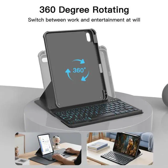 Adjustment: Enjoy ultimate flexibility with 360 rotation for portrait/landscape mode and 3 adjustable angles (110/120/130). Perfect for work, drawing, or streaming switch seamlessly between tasks. ^^ Detachable Backlit Keyboard with 7