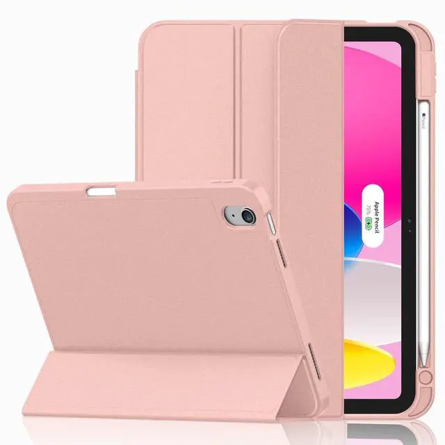iMieet Case for iPad (A16)/iPad 10th Generation [11-Inch 2025/10.9 Inch 2022], Trifold Stand Smart Cover with Pencil Holder and Soft TPU Back, Supports Touch ID(Rose Gold)