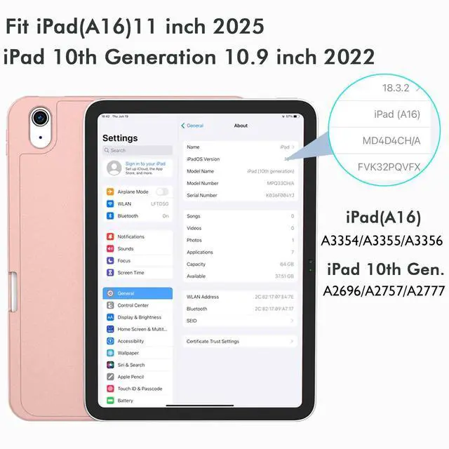 Designed for iPad (A16) 11-inch 2025 (Model: A3354, A3355, A3356),iPad 10th generation 10.9-inch 2022 (Model: A2696, A2757, A2777). Note: It will not be compatible other model. Please check your iPad model before purchase.