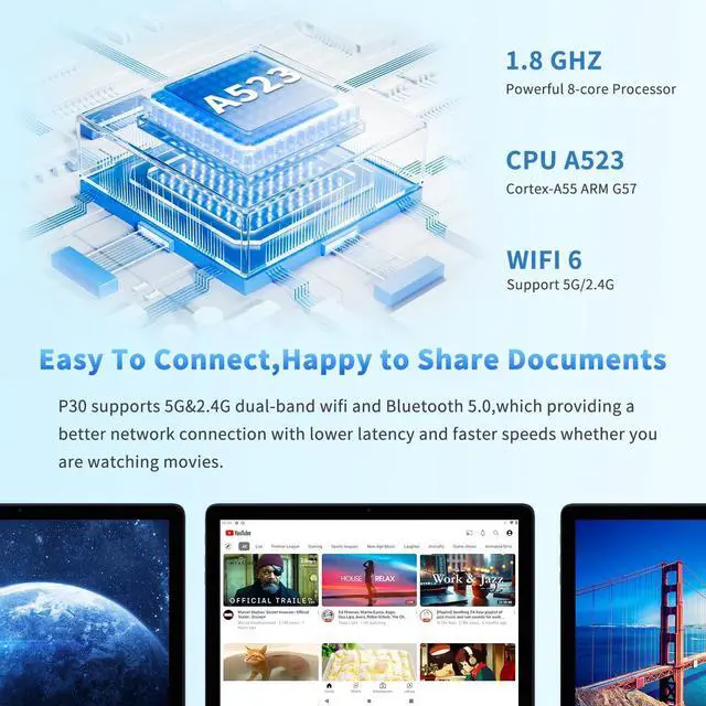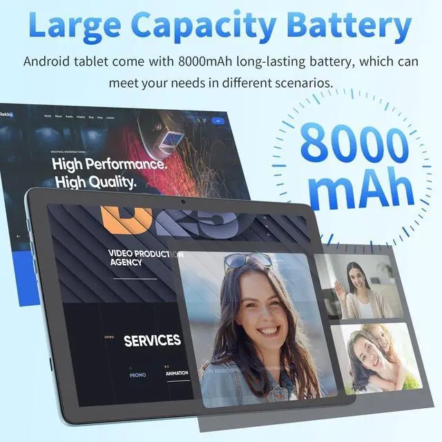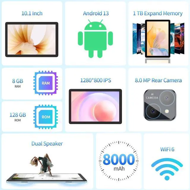 [Powerful Octa-Core Performance]Experience seamless multitasking with the Octa-Core processor ( 1.8 GHz) and 8GB RAM (expandable). Enjoy fast app launches, smooth gaming, and effortless browsingperfect for work, entertainment, and everything in between. ^^ [Sleek & Durable Design]Crafted with premium aluminum alloy and a zircon sandblasting finish, this tablet combines elegance with durability. The ultra-thin bezel maximizes your screen space for an immersive viewing experience. ^^ [Long-Lasting Battery & Fast Connectivity]Stay powered for hours with the massive 8000mAh battery, ideal for travel or binge-watching. Dual-band WiFi 6 ( 2.4G /5G) ensure ultra-fast, stable connections for streaming and downloads.