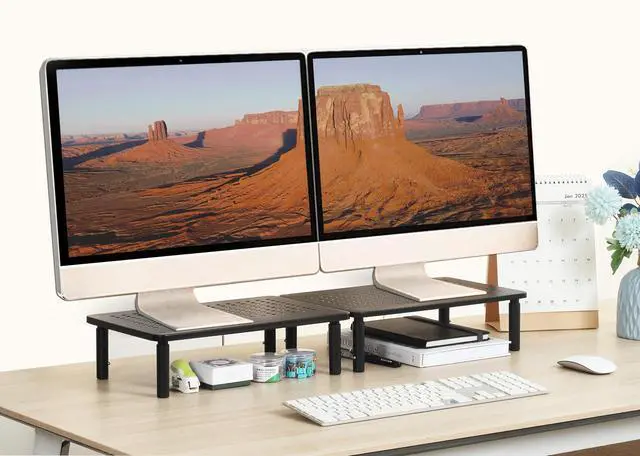 ^^ Mess terminator: You can easily organize and store your stuff like book. And you can stack monitor stand shelf together on desk to double the storage space..