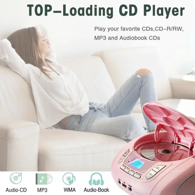 Top-loading CD Player: CD/MP3 player. compatible with CDs, CD-R/RW, MP3 CDs and audiobook CDs. Shuffle, repeat and program functions give you full control of how you listen to your tunes.