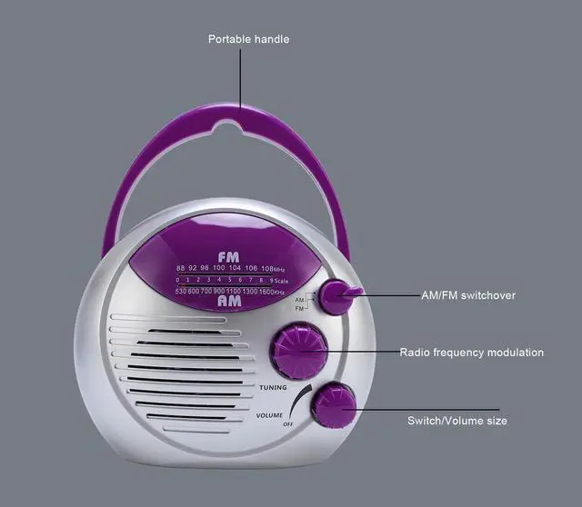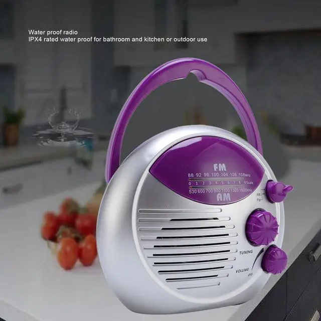 Portable: The bathroom radio features a compact design that enhances portability, allowing it to be easily hung on a showerhead or hook. This makes it ideal for use in the shower, on bedside tables, or in garages, providing versatile listening options for various environments. 2.