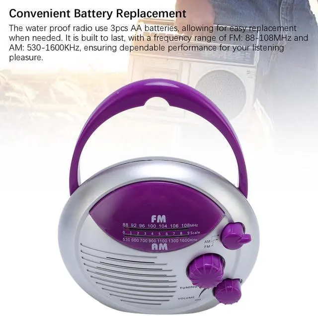 Convenient Battery Replacement: The water proof radio use 3pcs AA batteries, allowing for easy replacement when needed. It is built to last, with a frequency range of